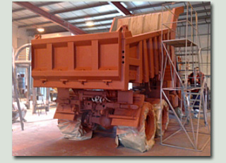Here we show an Iveco 330-25 Dump Truck following paint preparation having received it's base primer coat of paint.
